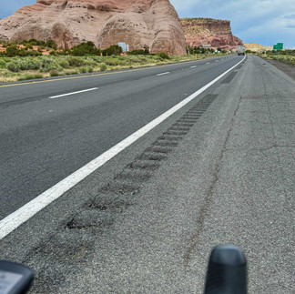 Riding into Gallup we connected with old Route 66. We were suppose to take a left turn onto a back street to get to the hotel but it crosses a large train depot. There were 2 trains, I kept waiting for 15 or so minutes when it started to rain. I saw an empty store front to take shelter under and try to find a new route around. Stay on main road, right on Arnold, left on Aztec, left on 603 over tracks, left on Maloney. There ya go, now you know too.